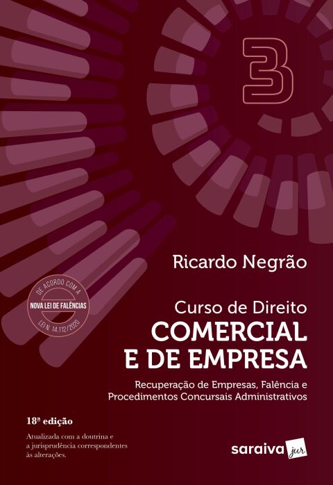 A coleção Curso de Direito Comercial e de Empresa. composta por 3 volumes. apresenta linguagem didática e acessível e. ao mesmo. tempo. aprofundada. A experiência de estudar com base na obra de Ricardo Negrão é. portanto. uma tarefa simples e intuitiva. Devido à didática com que foi idealizada. a obra é indicada a alunos da graduação e aos que se preparam para concursos públicos. Contribui para isso a inclusão de esquemas. quadros sinóticos. índice alfabético-remissivo e outros recursos que capturam a essência dos temas abordados e processam de maneira rápida e agradável as informações mais importantes para o leitor. Por sua vez. os conceitos devidamente aprofundados. a análise da legislação e da jurisprudência fazem com que pós-profissionais e graduandos também encontrem. neste livro. rico material de pesquisa. O terceiro volume. já na 18ª edição. é dedicado ao estudo geral do direito falimentar. da recuperação de empresas em juízo. da falência. dos crimes falenciais. dos procedimentos concursais administrativos e dos procedimentos de intervenção e liquidação. Data de fechamento: 22/12/2023