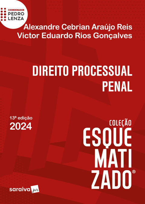 As obras da Coleção Esquematizado® são indicadas para alunos de graduação e candidatos a concursos públicos. Com projeto gráfico especialmente pensado para otimizar a preparação dos alunos. a metodologia aplicada na obra proporciona ao leitor uma leitura mais dinâmica e estimulante. favorecendo a assimilação do conteúdo. A proposta de cada edição é sempre a de oferecer ao leitor um material super atualizado. repleto de exemplos práticos e sintonizado com a jurisprudência dos tribunais superiores. Ao final de cada capítulo. o assunto é ilustrado com a apresentação de questões de provas de concursos. facilitando a percepção das matérias mais cobradas. bem como a fixação do assunto e a checagem do aprendizado. Além disso. considerando que muitos concursos públicos têm exigido a elaboração de peças processuais. nesta obra. o leitor encontrará um capítulo com modelos de peças e petições. Esta obra é indispensável para o aluno da graduação que deseja compreender os institutos do Direito Processual Penal. e essencial àqueles que pretendem ingressar em concursos de carreira jurídica. Data de fechamento da edição: 11/12/2023