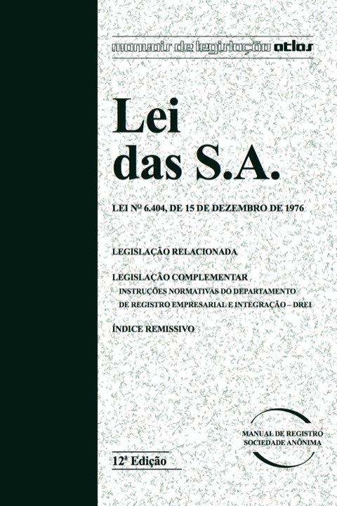 O presente volume da Coleção "Manuais de Legislação Atlas" apresenta a Lei n.º 6.404. de 15 de dezembro de 1976. alterada em seus dispositivos pela Lei n.º 11.638. de 28 de dezembro de 2007. que dispõe das sociedades por ações. Igualmente. traz ao leitor a legislação complementar pertinente e legislação relacionada. Ao final. oferece um índice remissivo que facilita a consulta dos assuntos de interesse do leitor