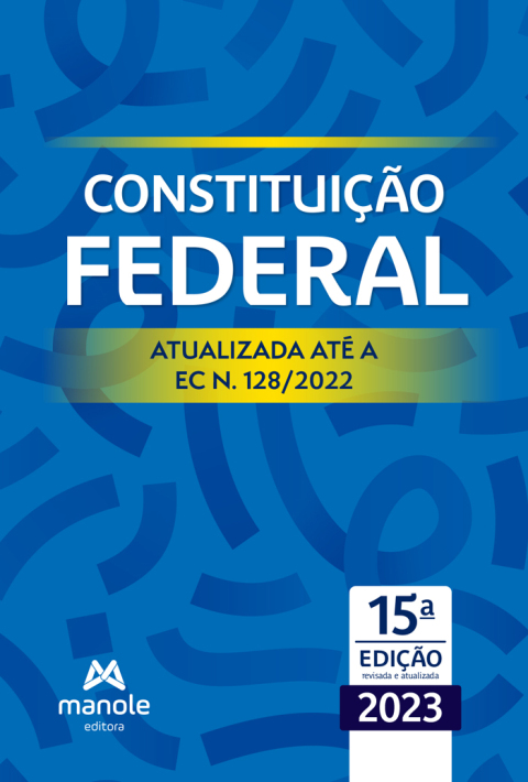 A Editora Manole traz novamente à comunidade jurídica – estudantes e profissionais – e também ao público em geral este texto fundamental para a cidadania: a Constituição Federal. Esta nova edição. a décima quinta. incorpora todas as atualizações decorrentes das publicações de todas as emendas até a Emenda Constitucional n. 128/2022. Um criterioso índice alfabético-remissivo facilita a pesquisa e a localização dos principais tópicos da Constituição Federal. A legislação desta edição está atualizada até o dia 03.01.2023. e o leitor poderá manter-se informado sobre as mudanças na legislação até 31.10.2023 no site manoleeducacao.com.br/codigosmanole