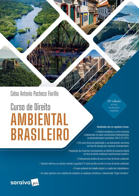 O Curso de Direito Ambiental Brasileiro é uma das mais conceituadas e tradicionais obras a respeito de Direito Ambiental no Brasil. O livro. que teve sua primeira edição publicada no ano 2000. é referência entre estudantes. docentes que ministram a disciplina nas faculdades de Direito do País (graduação. especialização. mestrado e doutorado) e profissionais (advogados. juízes. integrantes do Ministério Público. autoridades policiais etc.) que precisam aprender e trabalhar com esta importantíssima disciplina. A obra traz o mais completo estudo de Direito Ambiental no Brasil. esgotando os temas vinculados ao patrimônio genético. meio ambiente cultural (incluindo a análise do meio ambiente digital). artificial. do trabalho. da saúde ambiental e natural. Desenvolve. também. o Direito Processual Ambiental e o Direito Criminal Ambiental. além dos fundamentos do Direito Ambiental Tributário. A tutela jurídica da energia. do ecoturismo. da agropecuária sustentável. da saúde ambiental. bem como outros temas importantes no âmbito do Direito Ambiental brasileiro. é examinada em detalhes. Trata-se. enfim. de obra imprescindível do Direito Ambiental. que agrega a teoria construída com fundamento em nossa Carta Magna e a prática dos direitos vinculados às relações que envolvem a tutela da vida em todas as suas formas. A nova edição está atualizada com os seguintes temas: A Ordem econômica e a livre-iniciativa estabelecidas no plano constitucionalfundamentadas no desenvolvimento sustentável: ADI 6.137 (STF); ESG como forma de publicidade e seu balizamento normativo em face da atuação das empresas transnacionais; Regulação das empresas transnacionais no âmbito da economia digital em face do direito ambiental constitucional brasileiro; O balizamento jurídico do ouro em face do direito ambiental; Veículos elétricos ou veículos movidos à gasolina? A tutela jurídica do lítio em face do direito ambiental; O meio ambiente do trabalho digital e a saúde dos trabalhadores; As ações judiciais com o objetivo de combater as mudanças climáticas: o denominado litigio climático. Data de fechamento da edição: 20-9-2023
