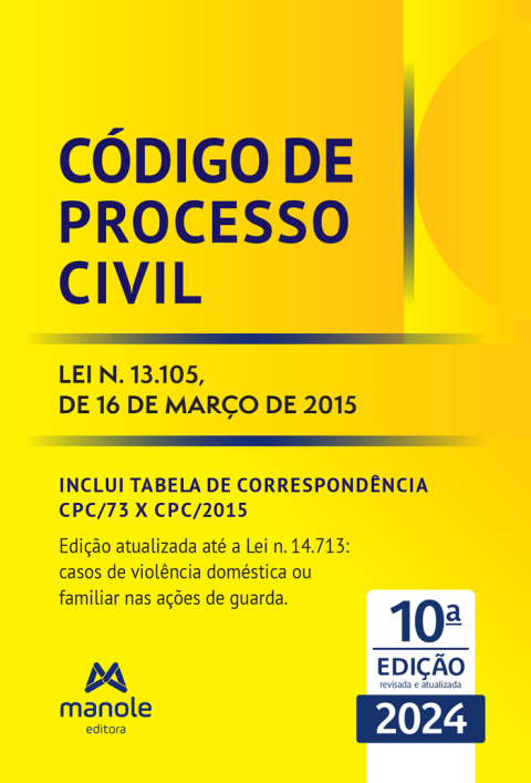 A Editora Manole. prosseguindo com suas publicações jurídicas. apresenta agora seu volume de bolso contendo exclusivamente o Código de Processo Civil (Lei n. 13.105. de 16.03.2015) As alterações desta edição estão de acordo com as Leis ns. 14.620 e 14.711 (títulos executivos) e a Lei n. 14.713 (casos de violência doméstica ou familiar nas ações de guarda). Esta edição está atualizada até o dia 19.12.2023. e o leitor poderá manter-se informado sobre as mudanças na legislação até 31.10.2024 no site manoleeducacao.com.br/codigosmanole
