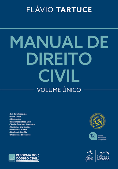Este Manual de Direito Civil pretende. desde a sua primeira edição. suprir as necessidades dos operadores do Direito Privado em geral. É direcionado a todos os seus aplicadores: juízes. promotores. procuradores. advogados. professores. alunos de graduação e de pós-graduação. bem como àqueles que se preparam para provas oficiais e concursos para a carreira jurídica. De fato. nos últimos anos. a obra tem atendido a esse fim. sendo adotada por alunos dos mais diversos níveis de ensino jurídico no Brasil; utilizada por procuradores. defensores e advogados para fundamentar suas peças; e instrumento de julgadores. inclusive de Tribunais Superiores. com o intuito de motivar suas decisões. O trabalho condensa os principais posicionamentos do autor a respeito das categorias jurídicas. expondo as doutrinas clássica e contemporânea. Traz também comentários sobre todos os enunciados doutrinários aprovados nas Jornadas de Direito Civil. eventos históricos promovidos pelo Conselho da Justiça Federal e pelo Superior Tribunal de Justiça. dos quais o autor participou ativamente. Tais exposições vêm acompanhadas dos entendimentos sumulados e ementados pelos Tribunais Brasileiros. notadamente da mais recente jurisprudência superior. Há um destaque especial para os julgados constantes dos Informativos de Jurisprudência e da ferramenta Jurisprudência em Teses. ambos do Superior Tribunal de Justiça. com análise crítica. O livro apresenta enfoque interdisciplinar. com interações com outros ramos jurídicos. como o Direito Constitucional e o Direito do Consumidor. Também está atualizado de acordo com as principais modificações promovidas pelo atual Código de Processo Civil. pela Lei da Liberdade Econômica e pelo Estatuto da Pessoa com Deficiência. sem prejuízo de outras leis de notável impacto para o Direito Privado. Estão expostas as grandes teses do Direito Civil Contemporâneo. tais como a teoria do diálogo das fontes. o Direito Civil Constitucional. os princípios do Código Civil de 2002. a eficácia horizontal dos direitos fundamentais. a técnica de ponderação. as eficácias interna e externa da função social do contrato. os conceitos parcelares da boa-fé objetiva (supressio. surrectio. tu quoque. exceptio doli. venire contra factum proprium. duty to mitigate the loss e Nachfrist). a visão contemporânea da responsabilidade civil e do inadimplemento obrigacional. a função social da posse. a função social e socioambiental da propriedade. as novas entidades familiares. a parentalidade socioafetiva. a multiparentalidade e as principais controvérsias da sucessão legítima. A partir da sua Edição 2025. esta obra trata do Projeto de Reforma do Código Civil. elaborado pela Comissão de Juristas nomeada pelo Senado Federal. com o estudo de todas as suas proposições. Nota-se. assim. uma interação contínua entre teoria e prática. entre as categorias da civilística contemporânea e a sua efetividade. em linguagem e conceitos alinhados com seu tempo
